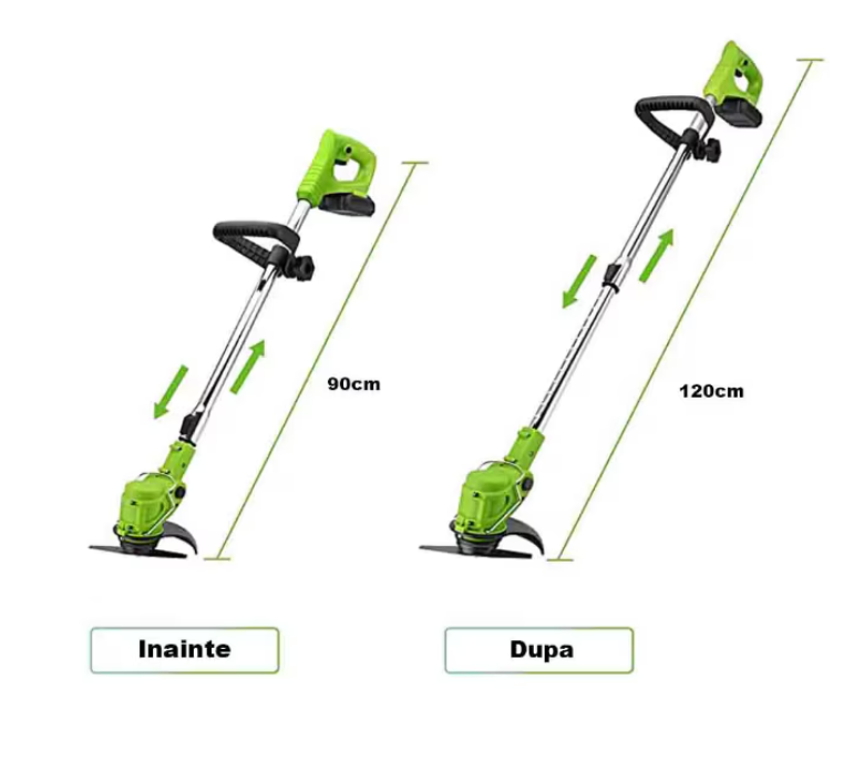 Obține un gazon perfect întreținut fără efort cu acest trimmer electric 48V, echipat cu 2 acumulatori și roți de ghidare, ideal pentru tăiere precisă și confort sporit în utilizare.